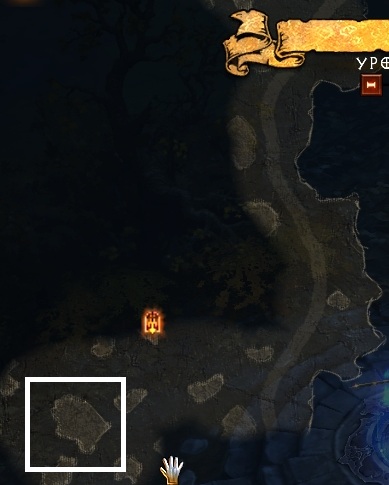 Акт I, Гиблые поля, Укромная роща, Старец (уникальный древошкур) (шанс респа квеста 1 из 4) на картинке ниже в этом месте должен быть сундук и 3 дерева которые оживут одно элитное дерево дропает ресурс, если там нет этого перезапускайте игру.